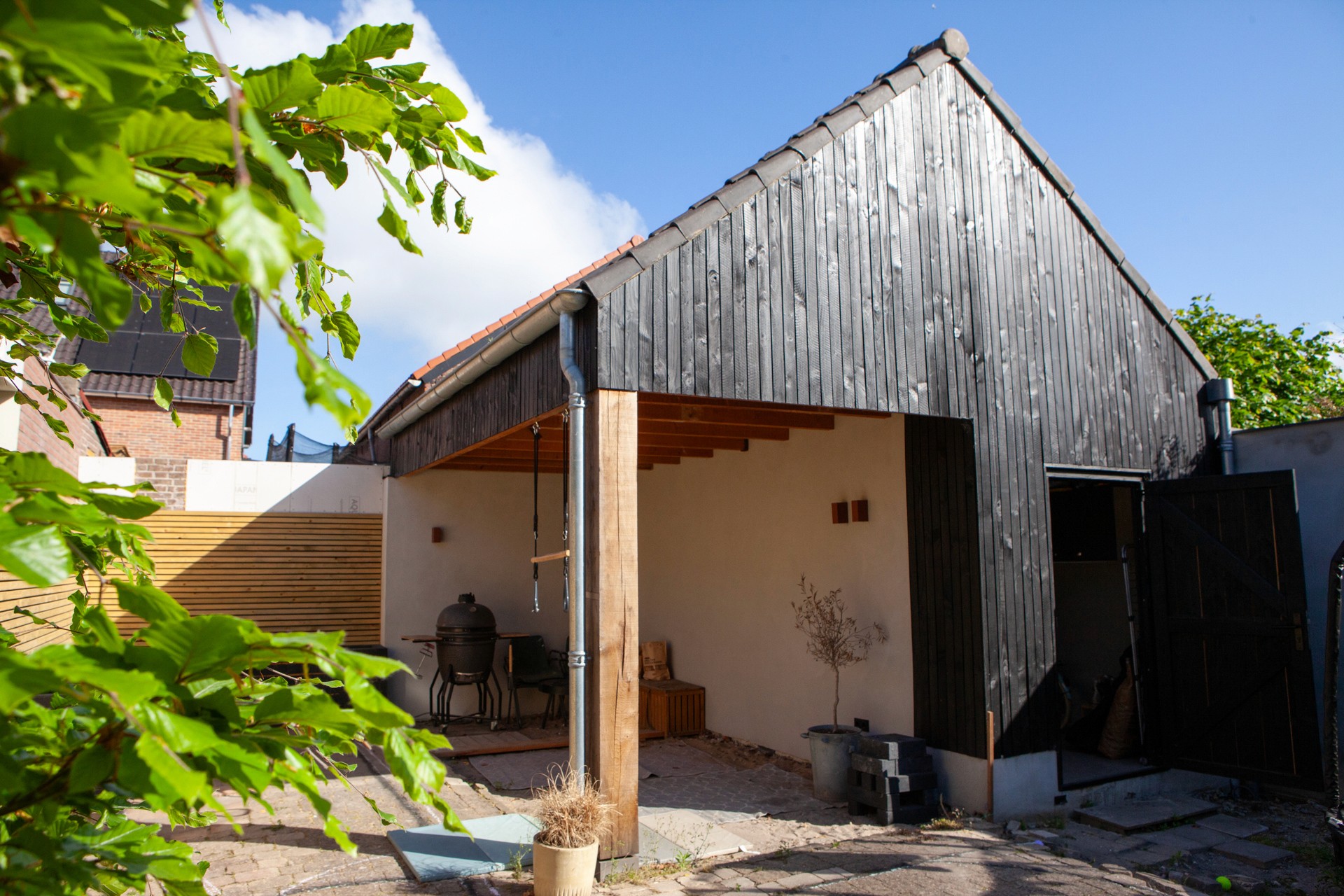 Houten gevelbekleding en dakgoten